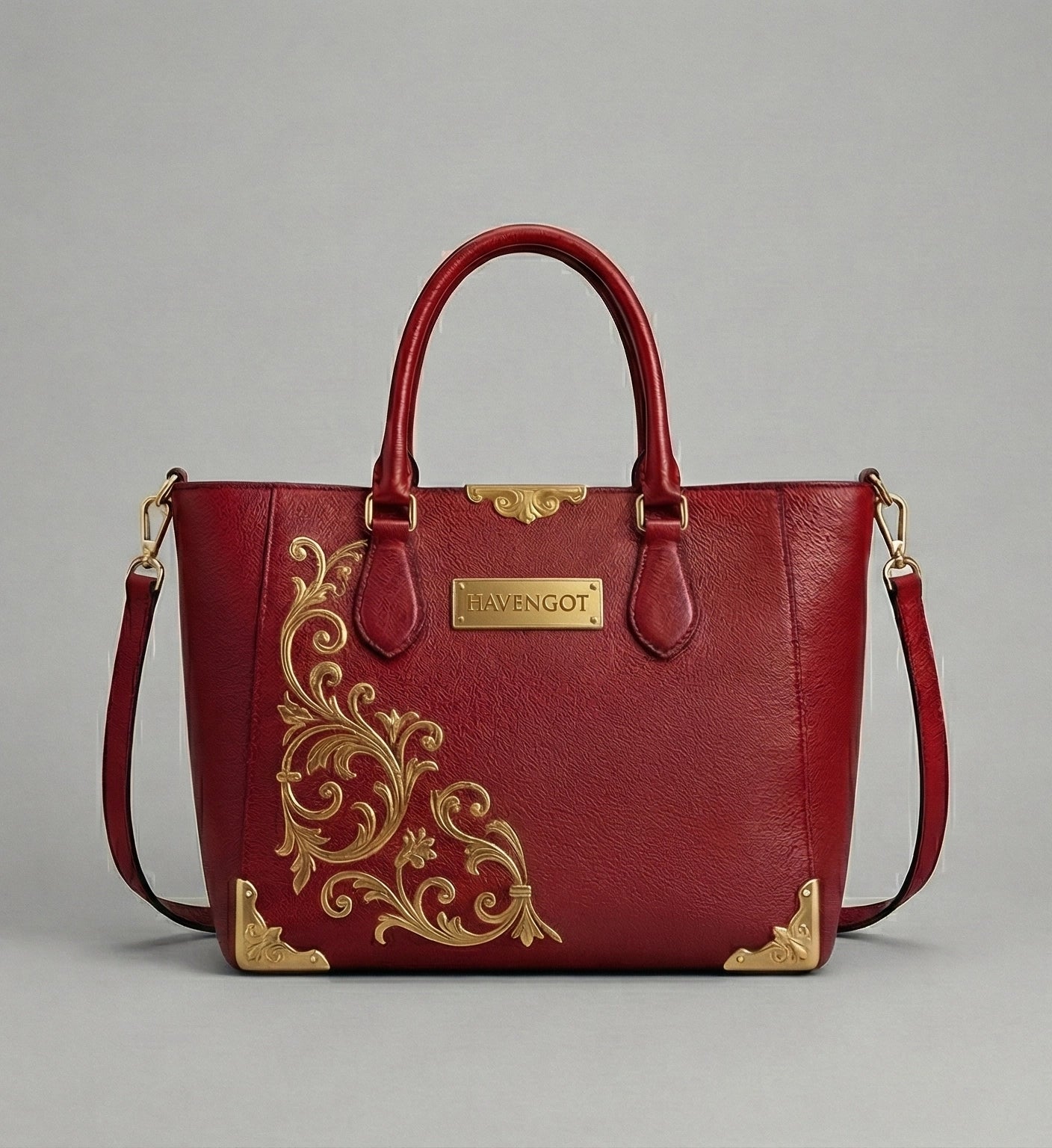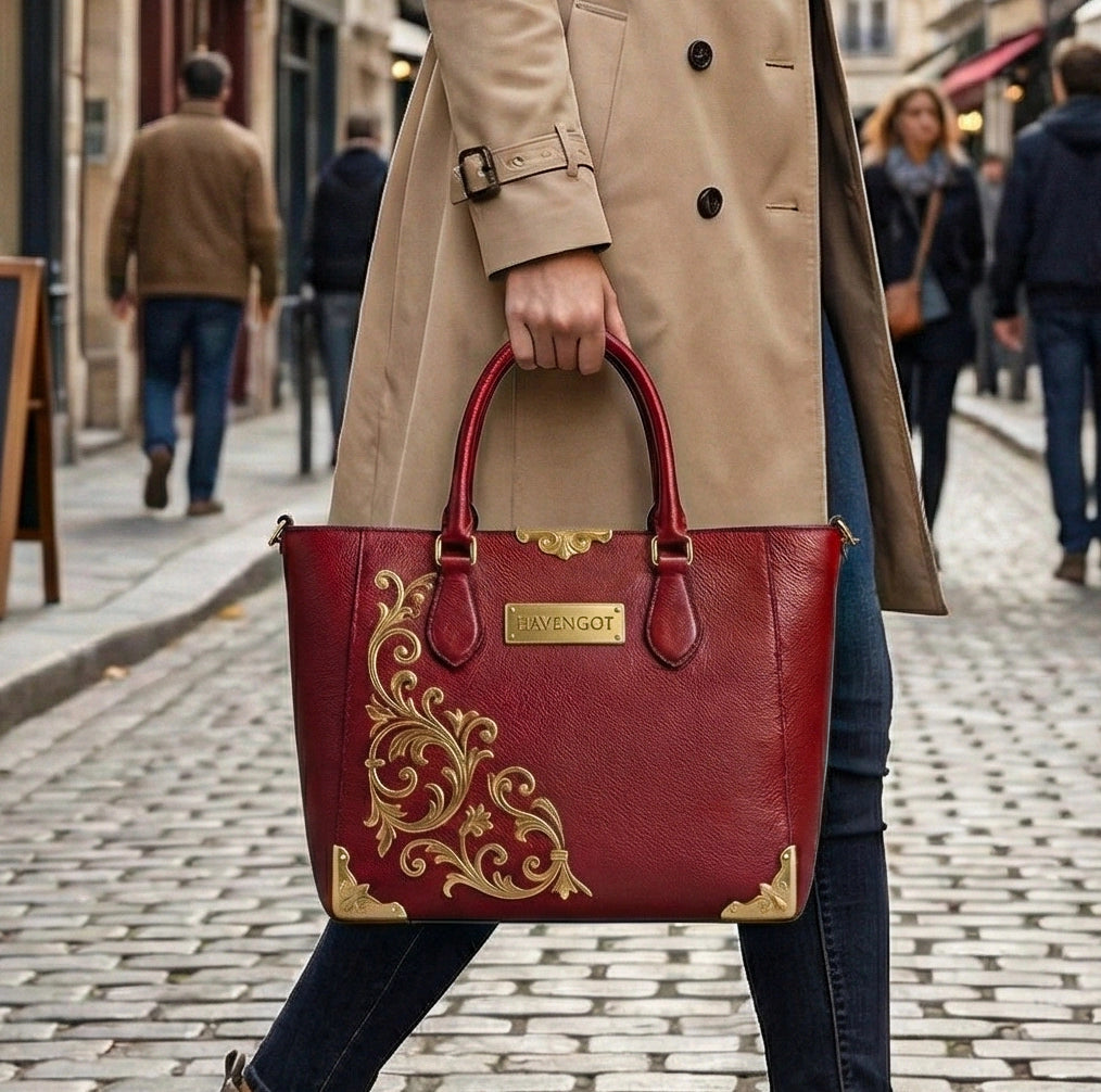 HAVENGOTT Burgundy Structured Top-Handle Bag